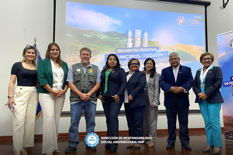 La Dra. Sara Chunga Palomino, directora de la Dirección de Responsabilidad Social Universitaria de la UNP, integró el Comité Calificador Regional del “II Encuentro Regional de Municipios, Ciudades y Comunidades Saludables”, espacio que reunió a diferentes municipalidades, alcaldes, equipos técnicos y autoridades sanitarias, de la Región con el propósito de compartir proyectos de responsabilidad social e impacto social orientados a mejorar la gestión municipal hacia el abordaje de escenarios sociales.